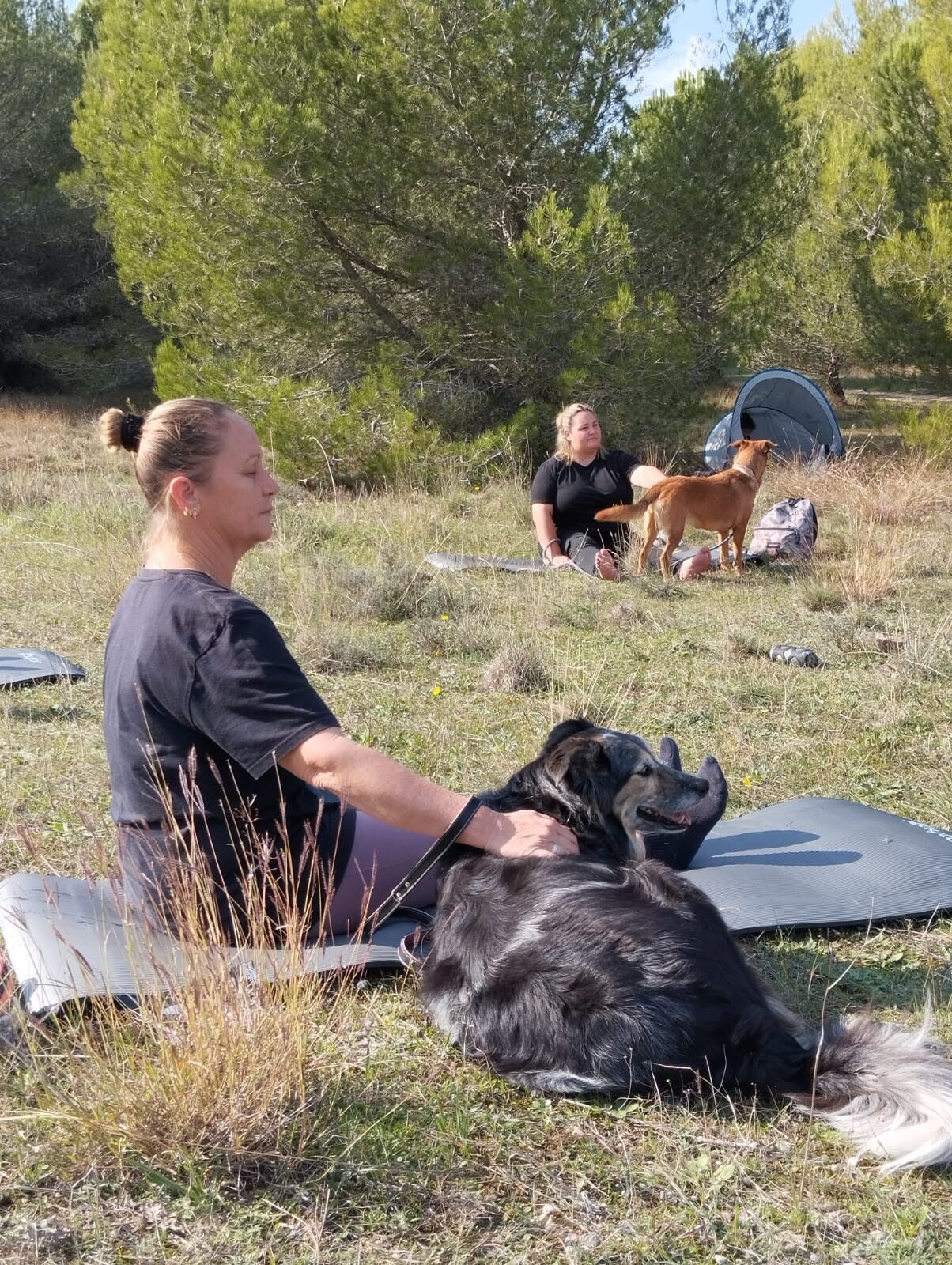 Le chien est libre de participer selon ses envies : il peut être en mouvement, en observation, ou au contact direct de son humain. Aucune posture n’est imposée à l’animal. L’objectif est d’instaurer un climat de calme, de confiance et de complicité.